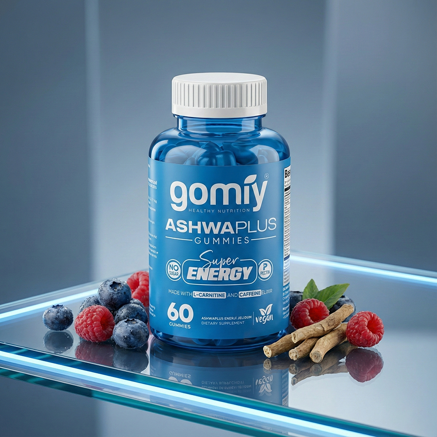 Gomiy AshwaPlus: L-Carnitine, Ginseng & Kafein | Süper Enerji Gummy İNDİRİMLİ!